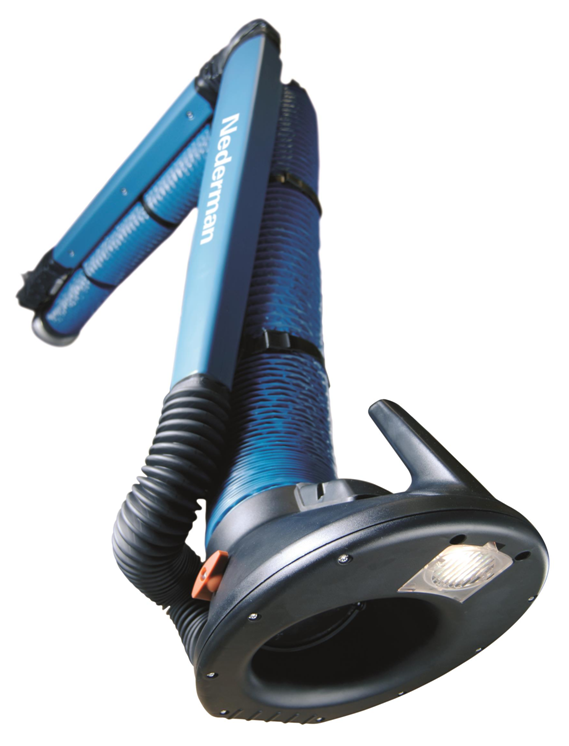NEX MD welding fume extraction arms are the top of the range arms when it comes to high airflows and extraction of media with higher temperatures than normal. The weld fume extractors are specially designed for working environments with very heavy smoke, vapours or non explosive dust. Typical workplaces are the metal fabrication industry or other type of industries where the need for extraction with large airflows is needed.